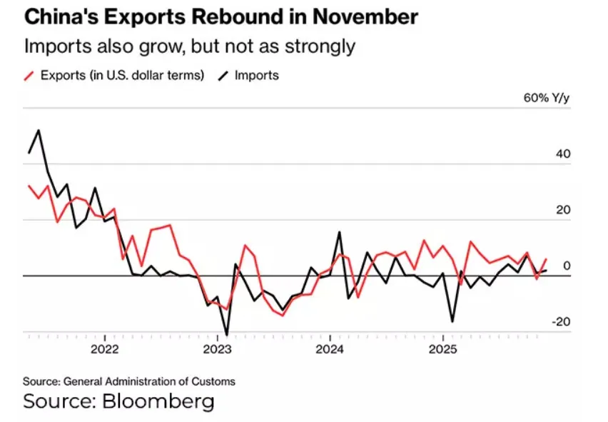 “November’s stronger-than-expected export growth demonstrates the resilience and competitiveness of China’s exporters,” said David Qu, chief China economist at Bloomberg Economics.