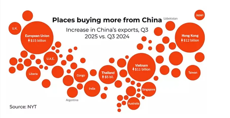 On the contrary, China has adapted, redirected, and modified its strategies, increasing the flow of goods to emerging markets, Europe, and Southeast Asia - frequently by relocating final assembly outside its borders to evade tariff restrictions.